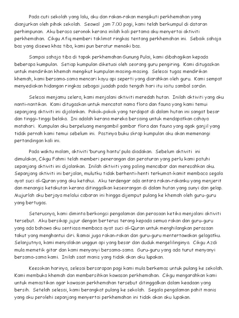 Baca versi flipbook dari Contoh Karangan. Pengalaman bercuti yang menarik pengalamanku yang paling indah ketika. Sesat di Hutan.